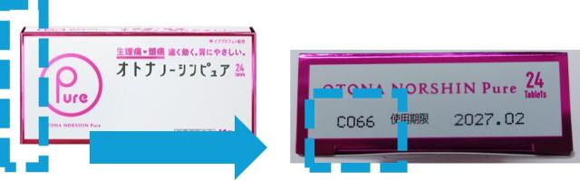 回収対象品の確認方法 ロットは個装の左側面に印字しています。