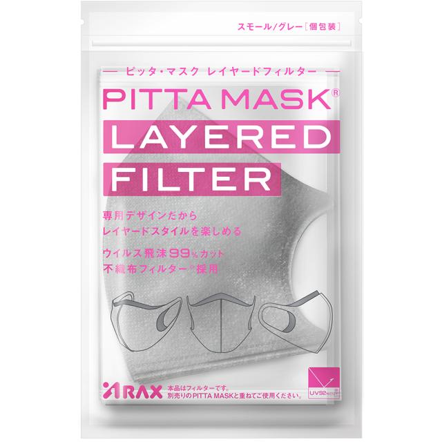 株式会社アラクス(本社:名古屋市、代表取締役社長 荒川愼太郎)は、顔型に密着して息がしやすいマスク「PITTA MASK」シリーズから、PITTA MASK専用デザインのレイヤードスタイルが楽しめる取り替えフィルター「PITTA MASK LAYERED FILTER REGULAR GRAY」と「PITTA MASK LAYERED FILTER SMALL GRAY」の2アイテムを2022 年11月30日に発売いたしました。
