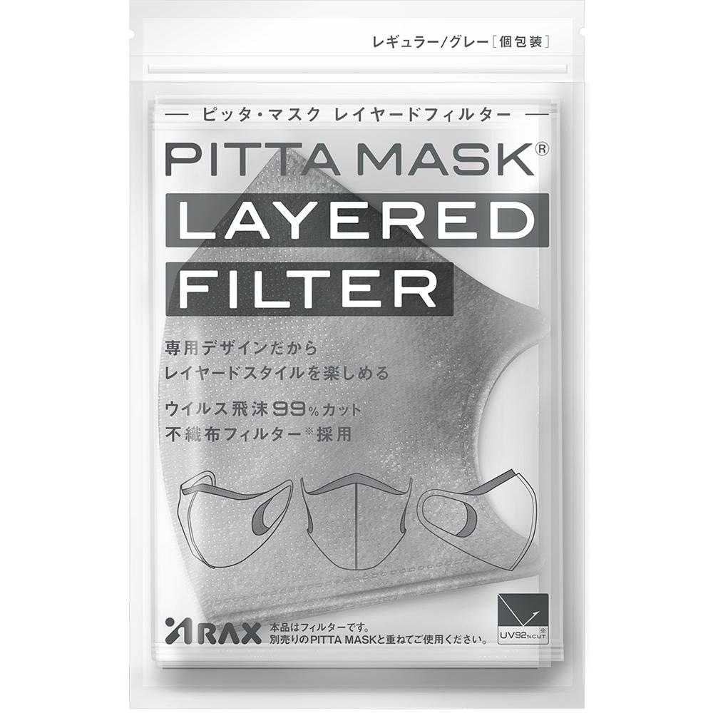 株式会社アラクス(本社:名古屋市、代表取締役社長 荒川愼太郎)は、顔型に密着して息がしやすいマスク「PITTA MASK」シリーズから、PITTA MASK専用デザインのレイヤードスタイルが楽しめる取り替えフィルター「PITTA MASK LAYERED FILTER REGULAR GRAY」と「PITTA MASK LAYERED FILTER SMALL GRAY」の2アイテムを2022 年11月30日に発売いたしました。