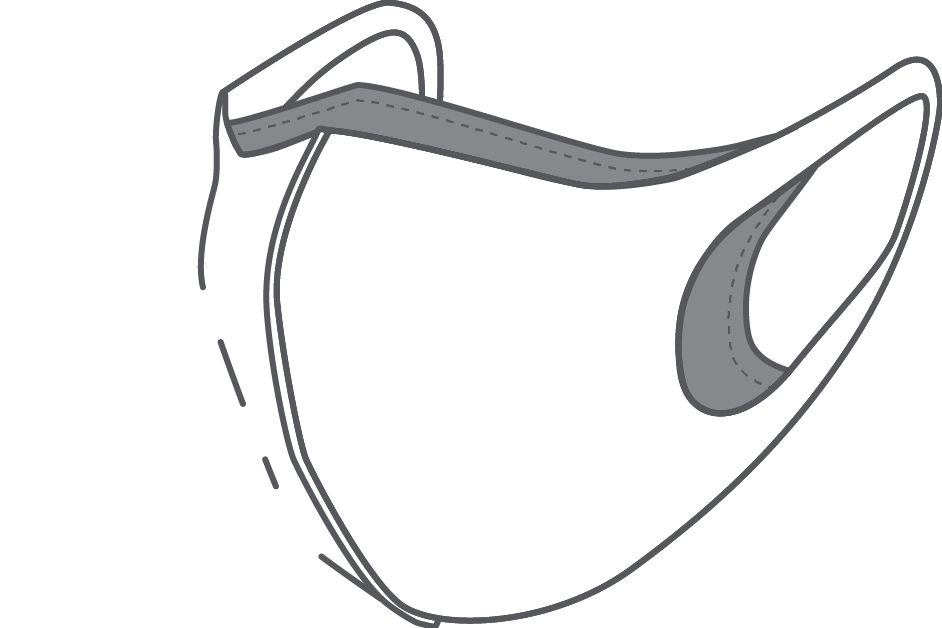 上下を確認して左右に広げ、あごの位置でPITTA MASKと合わせて重ねます。