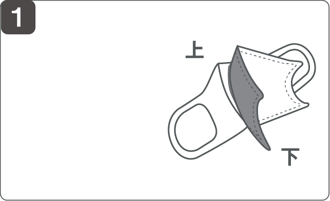 ?かけ部分を引っ張って、マスクを両?にかけます。