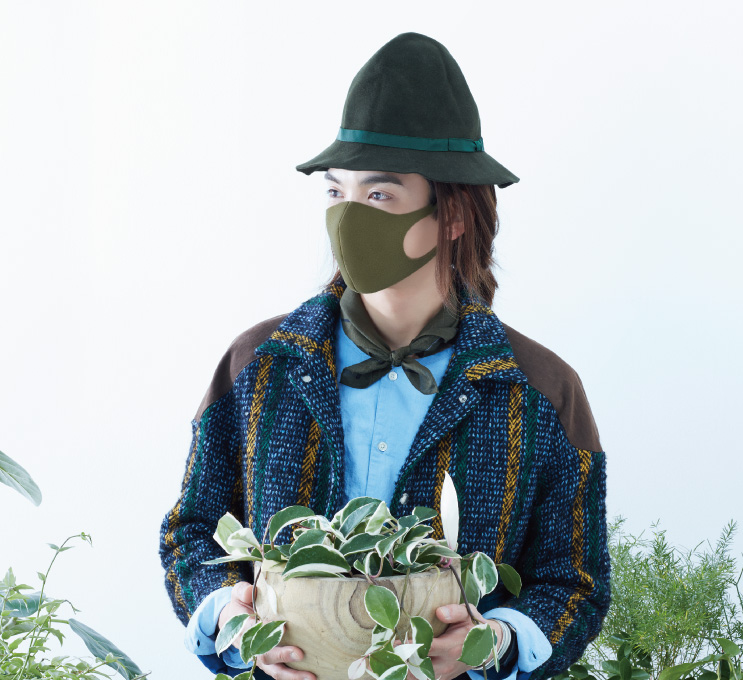 不仅仅是穿着的服装,更考虑该装束是否适合自己所在的地方。有绿色的地方,口罩也选择卡其色吧!而且,因为是PITTA MASK KHAKI,无需担心弄脏,非常实用。