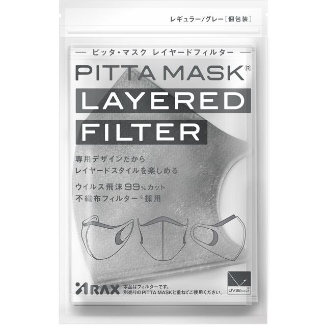 株式会社アラクス(本社:名古屋市、代表取締役社長 荒川愼太郎)は、顔型に密着して息がしやすいマスク「PITTA MASK」シリーズから、PITTA MASK専用デザインのレイヤードスタイルが楽しめる取り替えフィルター「PITTA MASK LAYERED FILTER REGULAR GRAY」と「PITTA MASK LAYERED FILTER SMALL GRAY」の2アイテムを2022 年11月30日に発売いたしました。